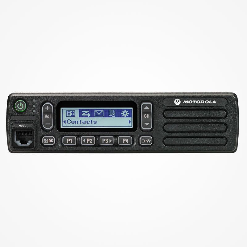 Móvil Digital con pantalla UHF 403-470Mhz, 25 Watios IP54, con micro de mano, cable alimentación y soporte.