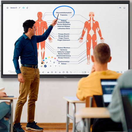 La tecnología táctil de la Serie 5 es de última generación, permitiendo hasta 20 puntos de contacto con una precisión de escritura superior. Gracias a su sensor de presión y a la tecnología de entrehierro cero (Zero Air Gap), la distancia entre el cristal y el panel LCD es mínima, eliminando el paralaje y ofreciendo una sensación de escritura tan natural como la de un lápiz sobre papel. Incluye la aplicación Creative Board, que permite sincronización en tiempo real con Google Classroom y otras plataformas educativas, facilitando un aprendizaje híbrido sin fisuras.