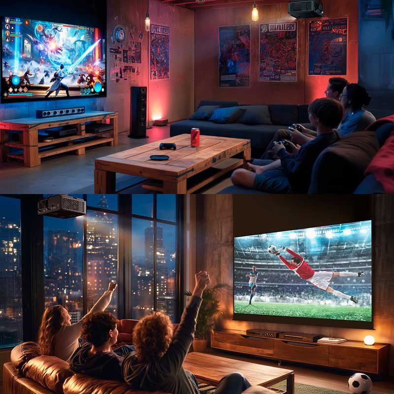 - También juegan con consola o PC y valoran un proyector con baja latencia e input-lag reducido, 8,5 ms de latencia a 1080p/240 Hz.