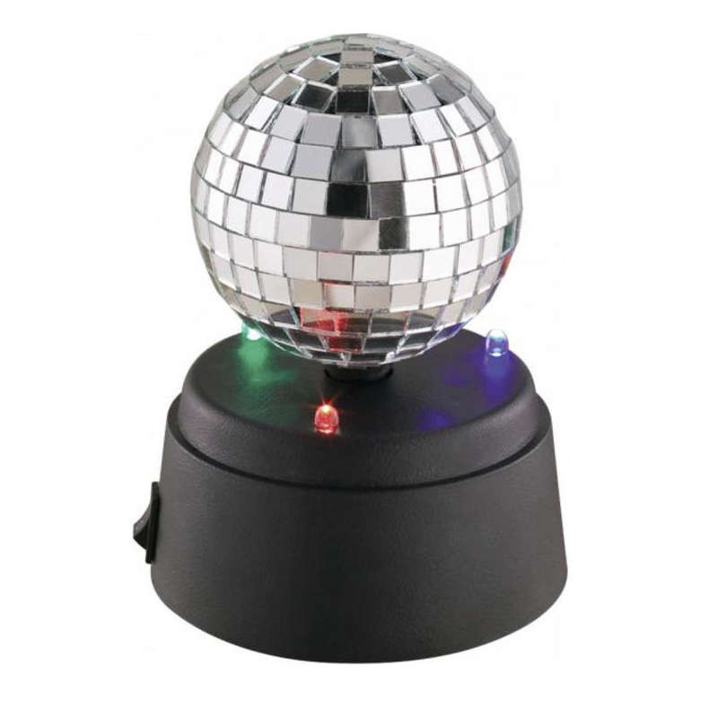 Conjunto formado por 3 pequeños efectos de luz a pilas, bola de espejos + disco bola + sirena.