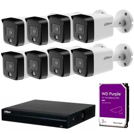 Pack compuesto de 8 cámaras tubulares DAHUA IPC-HFW1639TC-A-IL, un grabador DAHHUA NVR1108HS-8P-S3/H y un Disco Duro de 2TB