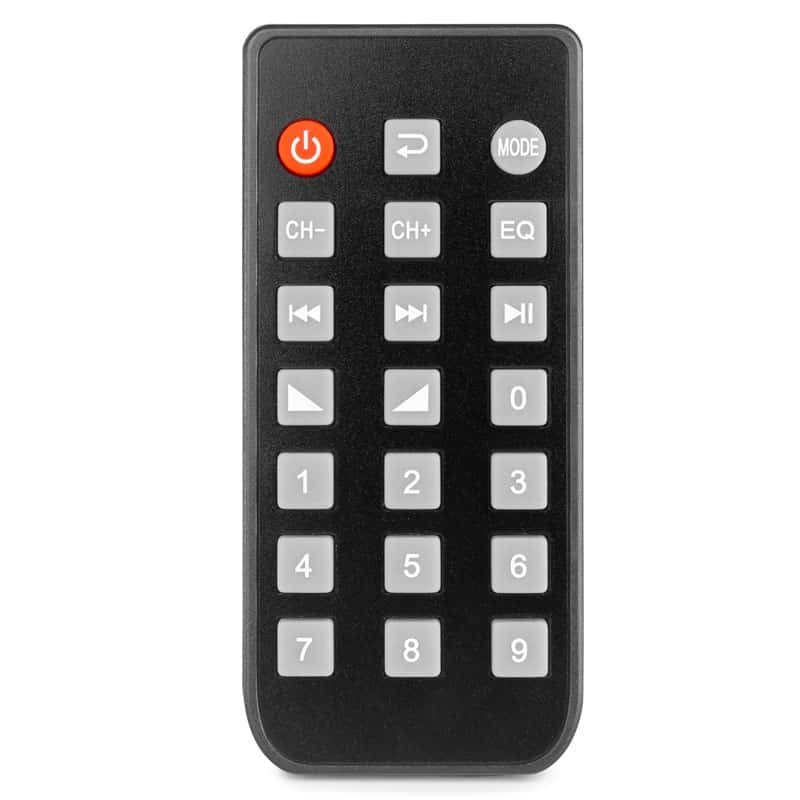 Amplificador de audio estéreo con Bluetooth con 4 zonas independientes (Multiroom) con volumen independiente en cada uno de ellos, que incluye entrada USB y SD card para reproducir archivos MP3/WMA, radio FM con display LED, y dos entradas de micrófono con ajuste de graves y agudos.