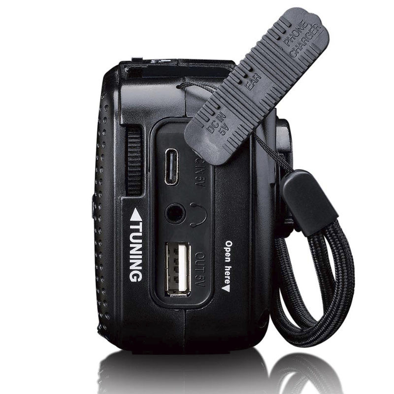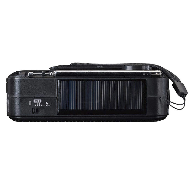 Radio linterna de emergencia portátil y batería en uno. Color Negro.
