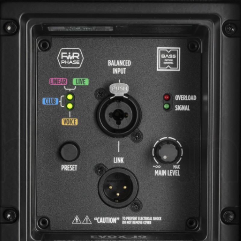 El EVOX J9 utiliza un diseño de columna compuesto por 6 altavoces de rango completo de 3"y un potente woofer de 12" alojado en un recinto bass-reflex. Este sistema está alimentado por un amplificador de Clase D de 2100 W, capaz de alcanzar un SPL máximo de 130 dB. Incluye tecnologías exclusivas de RCF como FiRPHASE (para una respuesta de fase lineal y sonido transparente) y Bass Motion Control (para un control preciso de la excursión del woofer, permitiendo bajos profundos sin distorsión).