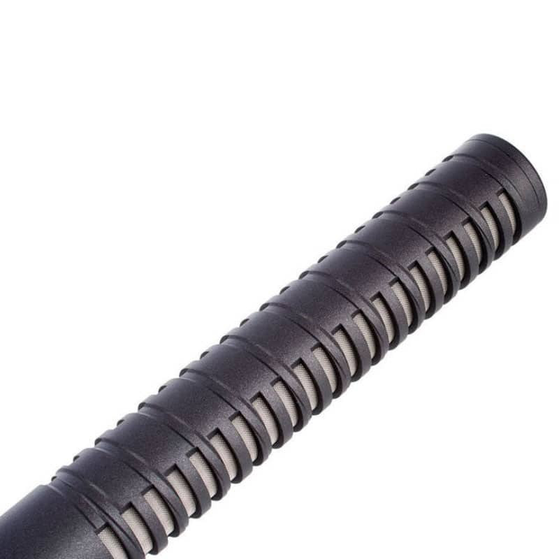 Micrófono de condensador direccional adecuado para grabaciones de escenas de cine, televisión y vídeo, con circuiteria de bajo ruido, calidad profesional para broadcast.