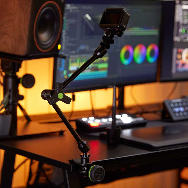 Con la ARM L 38 de Gravity le permite utilizar una gran variedad de equipos, desde una pinza de micrófono hasta una tableta o una cámara de acción, casi en cualquier lugar y en cualquier dirección en cuestión de segundos.