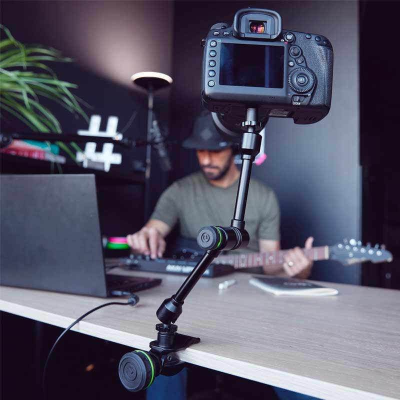 Gravity ha creado un innovador brazo de montaje con tres articulaciones que le permite mover su equipo con libertad y precisión en cualquier posición deseada. Una herramienta universal que le permite utilizar una gran variedad de equipos, desde una pinza de micrófono hasta una tableta o una cámara de acción, casi en cualquier lugar y en cualquier dirección en cuestión de segundos.