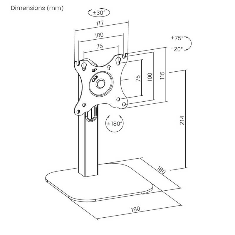 - VESA Máximo: 100x100mm (Compatible con VESA de 75×75, 100x100mm)