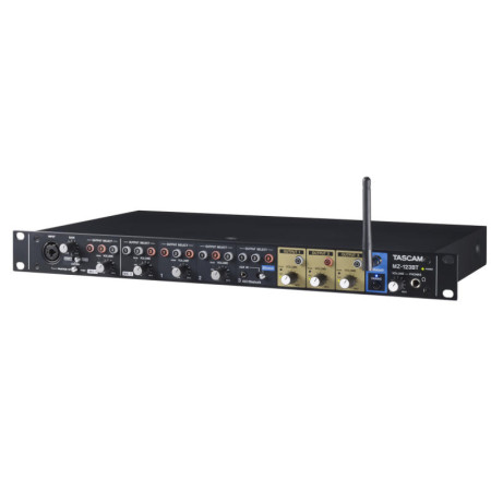 La Tascam MZ-123BT es un mezclador multicanal de montaje en rack (1U) diseñado específicamente para instalaciones comerciales fijas, como hoteles, restaurantes, salas de conferencias o tiendas. Su enfoque principal es la sencillez de uso y la flexibilidad para enviar audio a diferentes zonas.