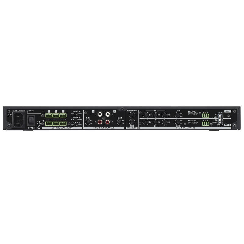 Mezclador multizona de 3 canales para montaje en rack con Bluetooth. 2 entradas de micrófono para anuncios o Talk Over.