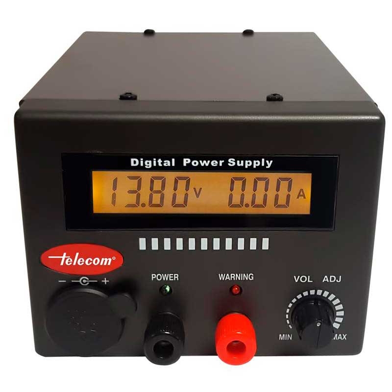 La TELECOM AV-2025-D es una fuente de alimentación digital, conmutada y regulable de 0 a 16 VCC, con una intensidad de 20 a 25 Amp., que incluye toma frontal de encendedor.