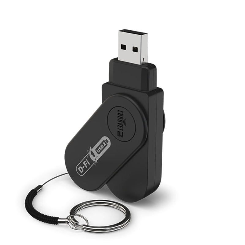 El D-Fi USB 2 es la nueva generación del popular transceptor inalámbrico de Chauvet DJ. Se trata de un dispositivo del tamaño de una memoria USB que se conecta directamente al puerto USB de las luminarias compatibles (como los focos EZLink, COLORband, Pinspot Q1Z o las cabezas Intimidator). Su función es recibir o transmitir señales de control DMX e ILS de forma inalámbrica, eliminando la necesidad de tirar metros de cableado entre los focos y la consola de control.