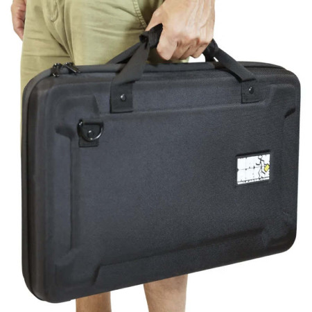 La W-MCB-MIXPROGO es una maleta de transporte técnica de la serie Super Light de Walkasse. Está fabricada mediante moldeo por compresión de EVA (Etileno Vinilo Acetato) de 7 mm, un material que ofrece una rigidez estructural superior a una funda blanda pero con un peso mucho menor que un flight case de madera y aluminio. Es la solución definitiva para DJs que necesitan movilidad sin comprometer la seguridad de su controlador.