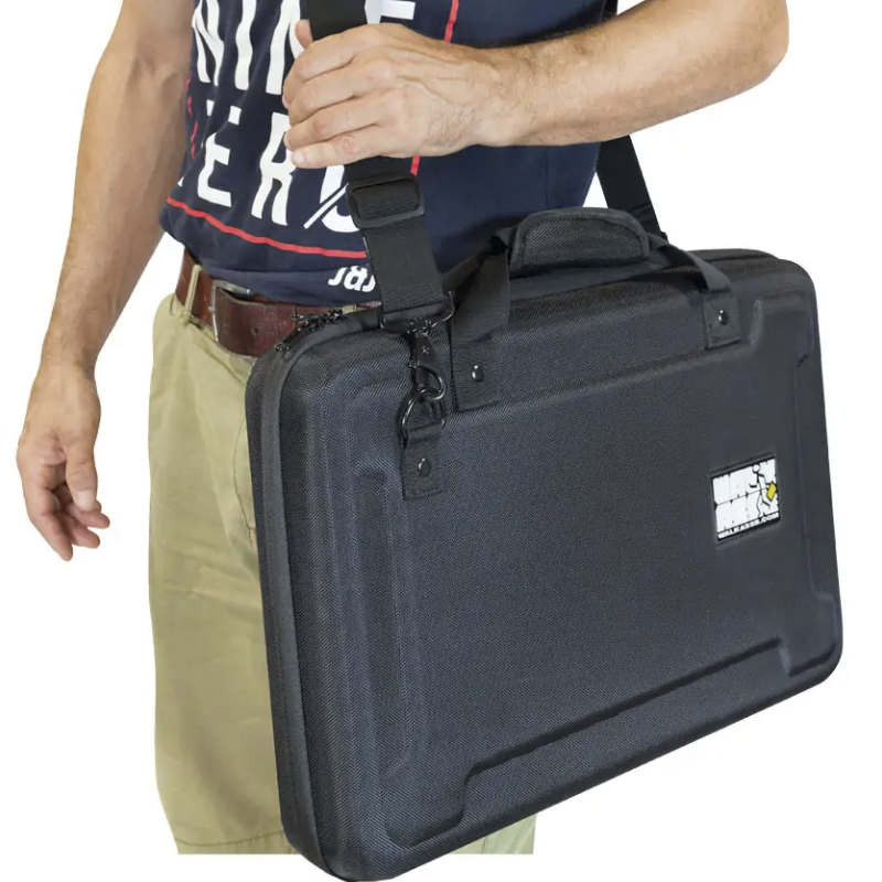 Su diseño exterior cuenta con un acabado en nailon balístico de gran resistencia que protege contra rozaduras y líquidos. En el interior, el controlador queda encajado y protegido por espuma de alta densidad (tipo "huevo" en la tapa), lo que evita que los botones, faders y jog wheels sufran presión o daños durante el movimiento.