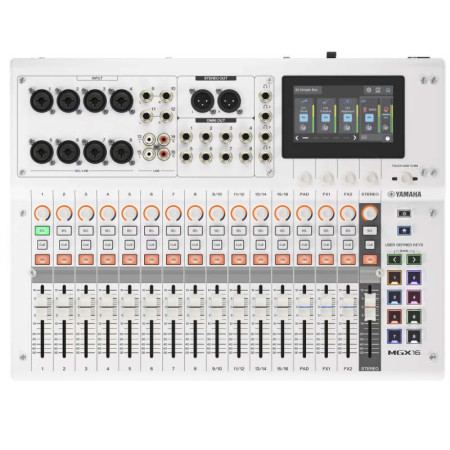 La MGX16 es un mezclador digital compacto que destaca por su calidad de sonido "True Sound" de Yamaha. Está equipada con preamplificadores de micrófono de alta gama y una interfaz táctil intuitiva, lo que la hace ideal tanto para ingenieros experimentados como para usuarios que se inician en la mezcla digital.