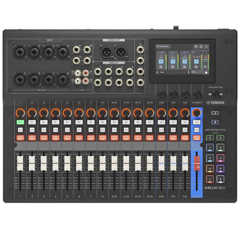 La Yamaha MGX16V es una consola de mezcla digital de 22 canales que revoluciona la aclamada serie MG al integrar una potente interfaz de audio y vídeo HDMI-USB. Está diseñada para ser una solución "todo en uno" para creadores de contenido, músicos y técnicos de sonido.